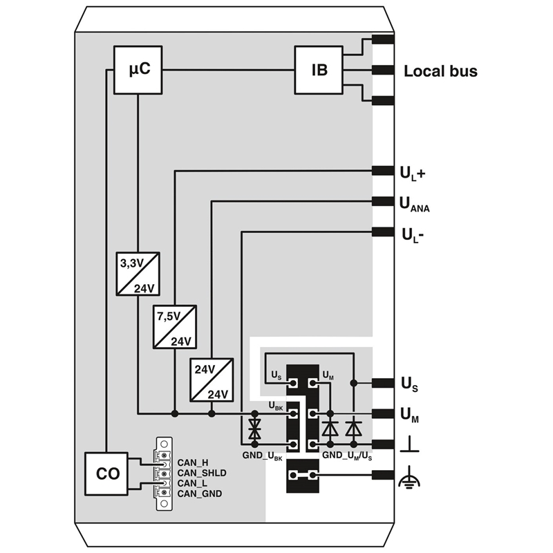 Inline, Coupleur de bus CANopen, Vitesse de transmission dans le bus local 500 kBit/s / 2 MBit/s, Indice de protection IP20, connecteur Inline et porte-étiquette inclus