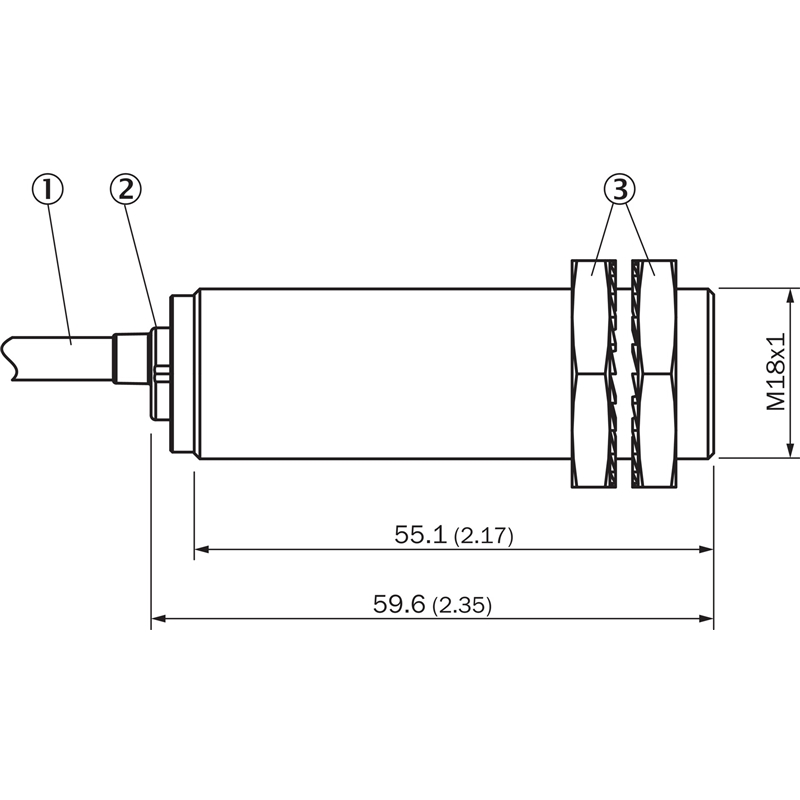 Détecteur inductif, M18x1, PNP, NF, 50 Hz, Sn: 8mm, noyé, 59,5(55)mm, tout-inox V2A, 10-30Vdc, câble 2m PUR