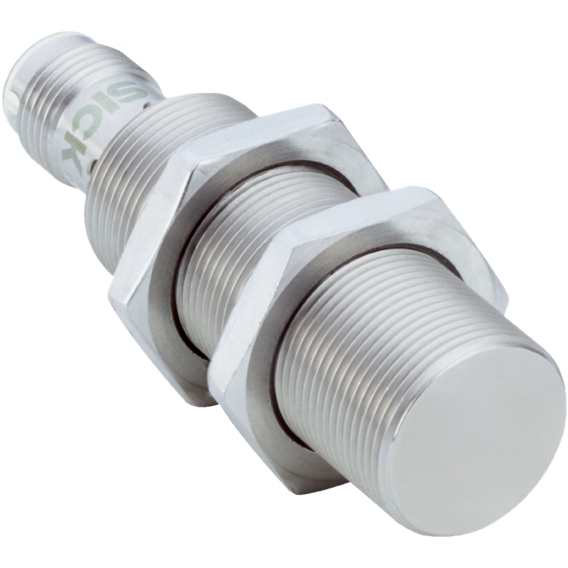 Détecteur de proximité inductif; Format: Cylindrique fileté, M18 x 1; Version électrique: 3 fils DC; Distance de commutation Sn: 8 mm; Montage: Noyable; Sortie de commutation: PNP; Type de commutation: Contact à fermeture (NO); Fréquence de commutation: 50 Hz; Raccordement: Connecteur mâle M12, 4 pôles; Tension d'alimentation: 10-30Vdc; Diamètre: Ø 18 mm; Longueur totale du boîtier: 64,7 mm; Longueur de filetage utile: 45,7 mm; Matériau du boîtier: Acier inoxydable V4A, DIN 1.4404 / AISI 316L; Matériau, surface active: Acier inoxydable V4A, DIN 1.4404 / AISI 316L; Indice de protection: IP68, IP69K (EN 60529); Température de fonctionnement: –25 °C ... +75 °C; Caractéristiques spécifiques: Surface active en acier inoxydable V4A, Résistant aux réfrigérants et aux lubrifiants; Contenu de la livraison: Écrou de fixation, acier inoxydable V4A (2 x); Série: IMI
