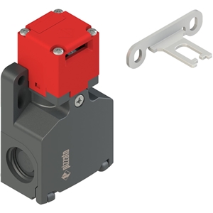 Interrupteur de sécurité à actionneur séparé; Boîtier: Boîtier en technopolymère, trois entrées câbles filetées M20x1,5; Blocs de contact: 1NO+1NC rupture lente superposés (B37); Ouverture positive: Oui; Type de tête: Tête séparable; Force d’extraction de l’actionneur: 10 N;...