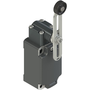 Interrupteur de position à levier rotatif à galet réglable; Boîtier: Boîtier métallique, une entrée câbles filetée M20x1,5; Blocs de contact: 2NC rupture lente, contacts indépendants; Ouverture positive: Oui; Actionneur: Levier rotatif à galet réglable; Parties...