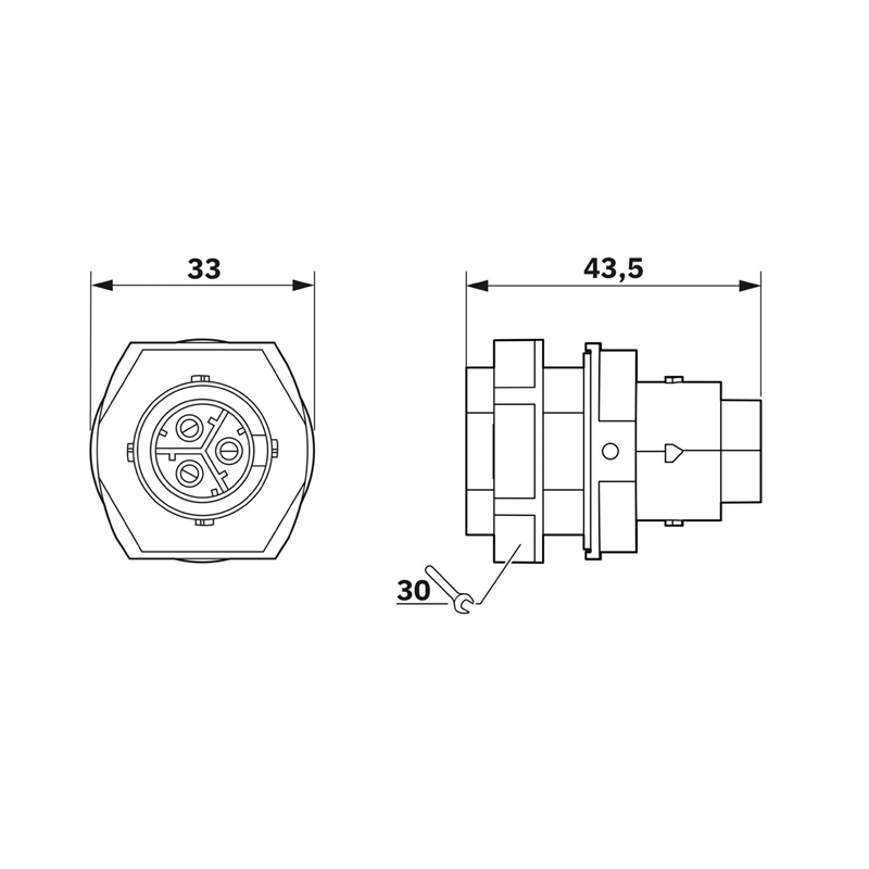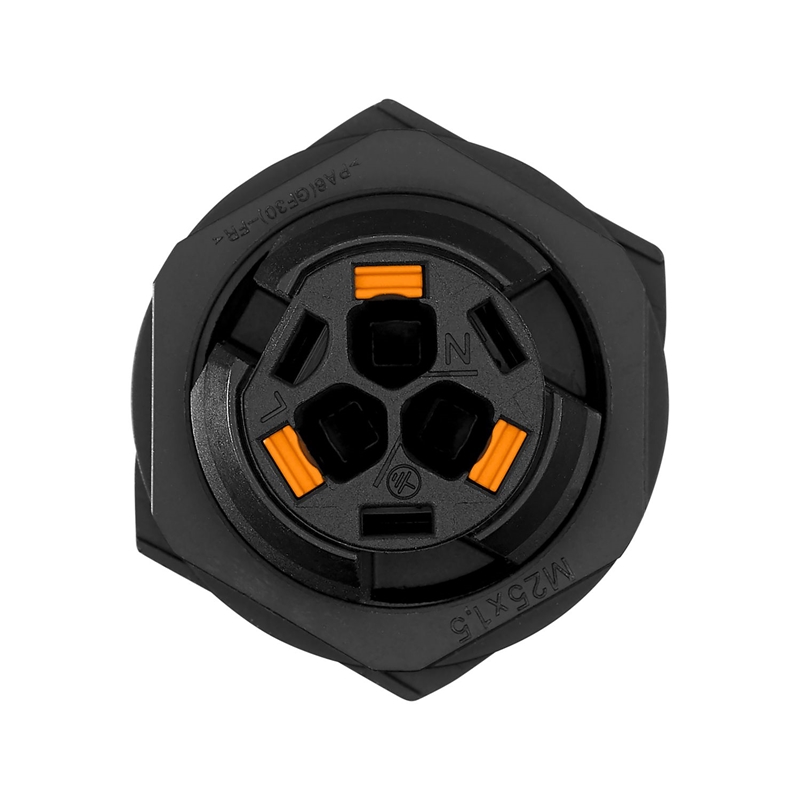 Traversée de paroi, pour connecteurs, product family: IPD, type de raccordement: Raccordement Push-in, nombre de pôles: 2+PE, M25, Connecteur femelle, 0,5 mm² ... 2,5 mm², 500 V, 20 A, PA, noir, codage: P