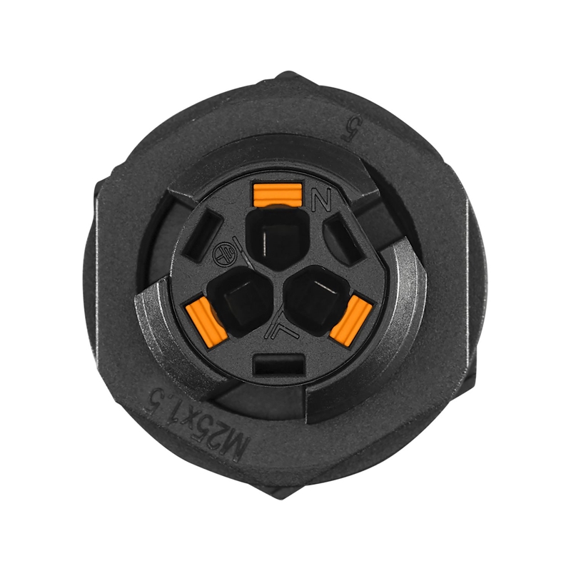 Traversée de paroi, Raccordement direct, product family: IPD, type de raccordement: Raccordement Push-in/ Raccordement Push-in, nombre de pôles: 2+PE, M25, 0,5 mm² ... 2,5 mm², 600 V, 20 A, PA, noir, diamètre extérieur du câble: 6 mm ... 9 mm et 8 mm ... 13 mm