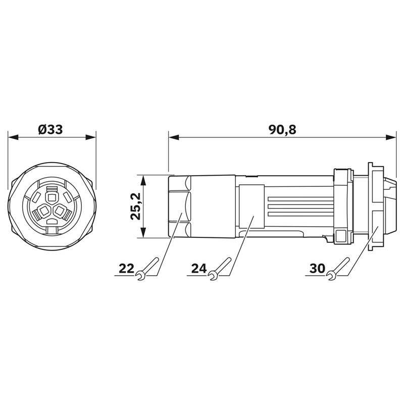 Traversée de paroi, Raccordement direct, product family: IPD, type de raccordement: Raccordement Push-in/ Raccordement Push-in, nombre de pôles: 2+PE, M25, 0,5 mm² ... 2,5 mm², 600 V, 20 A, PA, gris clair, diamètre extérieur du câble: 6 mm ... 9 mm et 8 mm ... 13 mm