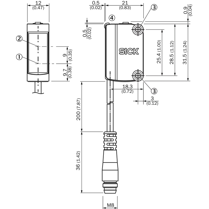 • Raccordement: Câble avec connecteur mâle M8, 4 pôles, 0,2 m