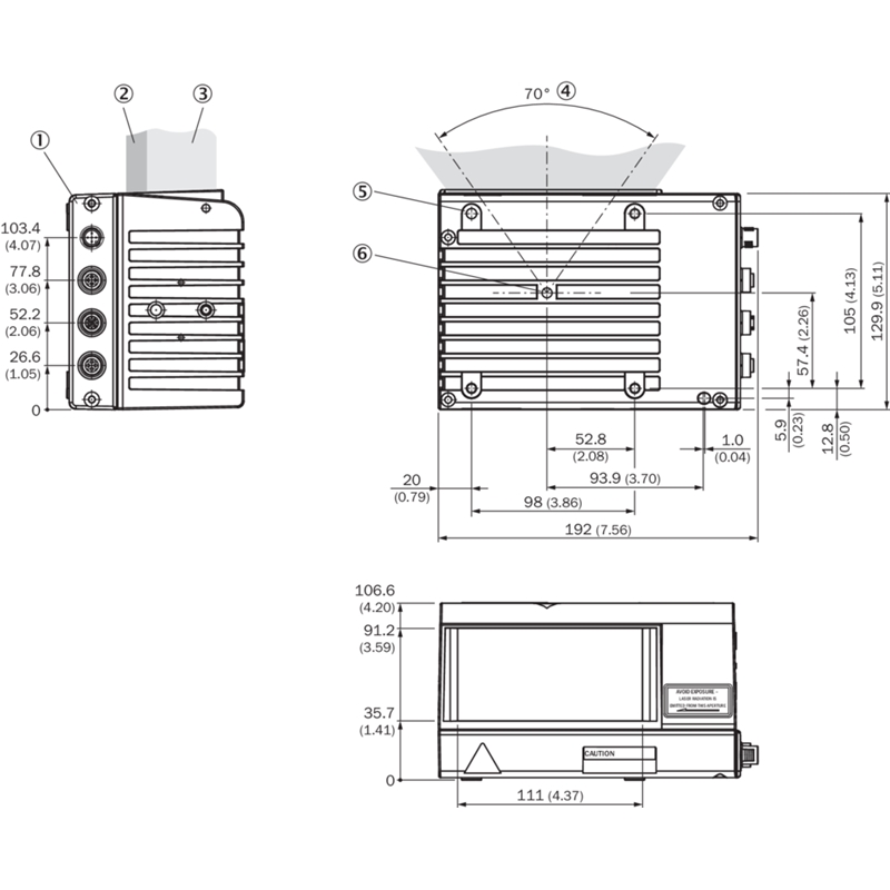 • Mode de raccordement: 1 x M12, connecteur mâle 5 pôles (Power + I/O + Sync), 1 x Connecteur femelle 8 pôles M12 (Ethernet, 1 Gbit/s), 1 x M12, connecteur femelle 5 pôles (Encoder + I/O)