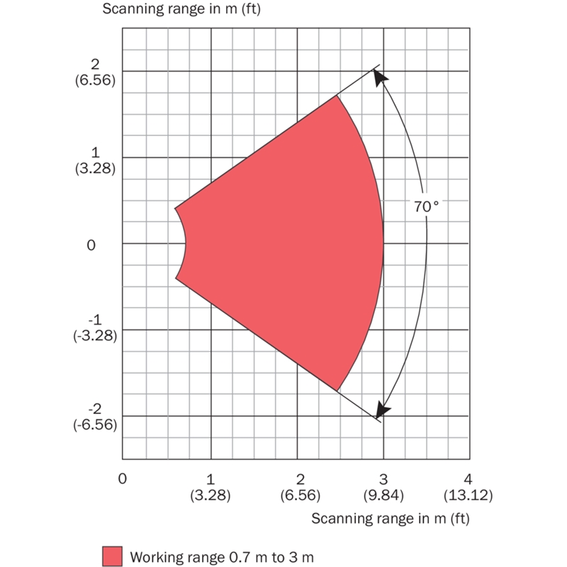 • Zone de fonctionnement: 0,7 m ... 3 m