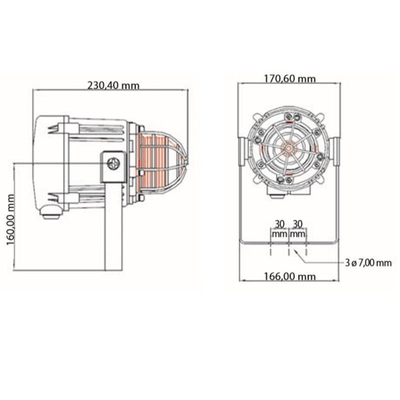 Feu LED avec grille protection 230 Vca optique Transparent IP66/67