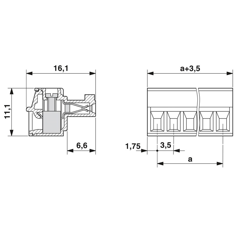 Fiche, Intensité nominale : 8 A, Tension de référence (III/2) : 160 V, Nbre. pôles : 14, Pas : 3,5 mm, Raccordement vissé, Coloris : vert, Surface des contacts : étain