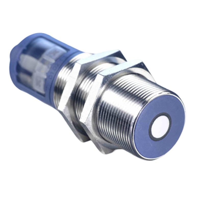 Détecteur à ultrasons; Format: Cylindrique filetée, M30 x 1,5; Plage de mesure: 65...600 mm; Portée Sn: 350 mm; Mode de fonctionnement: - détecteur de proximité/mode réflexion, - barrière à réflexion, - mode fenêtre; Réglage: 2 boutons-poussoirs + afficheur LED (TouchControl); Type de commutation: PNP; Sortie de commutation: 2 x NF/NO programmable; Temps de réponse: 64 ms; Fréquence de commutation: 12 Hz; Synchronisation: Oui; Mode multiplex: Oui ; Raccordement: Connecteur M12 à 5 pôles; Tension de service Ub: 9-30Vdc; Matériau du corps: Laiton, nickelé; Indice de protection: IP67 (selon EN 60529); Température de service: -25° C à +70° C; Série: mic+