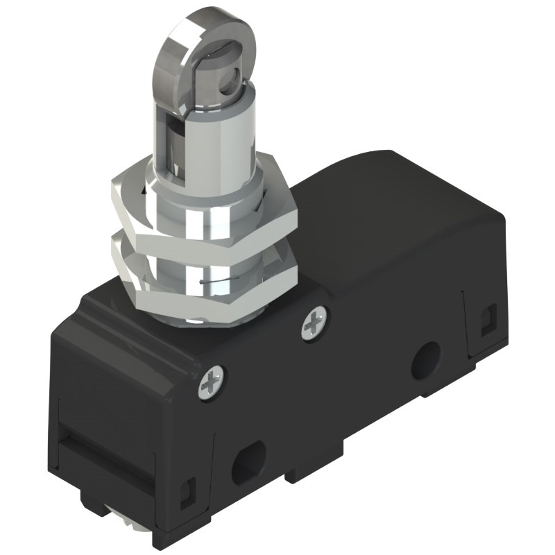 Micro-interrupteur à poussoir fileté à galet; Boîtier: Boîtier en technopolymère; Blocs de contact: 1NO+1NC en commutation; Ouverture positive: Oui; Type d'actionnement: Action directe; Type de borne: À vis avec plaque auto-élévatrice; Type de contacts: Contacts en argent; Degré de protection maximal: - IP00 sans couvre-borne- IP20 avec couvre-bornes VF C01 - VF C03- IP65 avec couvre-bornes VF MKC; 22 + MK V; 2; ouVF MKC; 23 + MK H; 2; )- IP65 contacts électriques; Température ambiante: -40°C ... +85°C; Série: MK