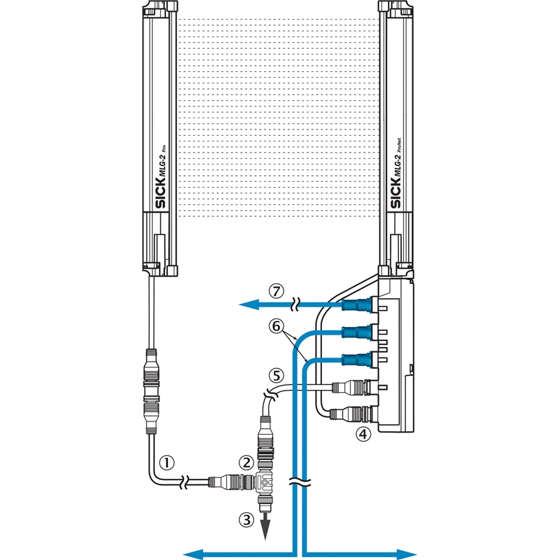 Rideaux d'automatisation mesurants; Version d’appareil: ProNet - Advanced functionality incl. feldbus; Principe du capteur: Émetteur / récepteur; Entraxe des faisceaux: 50 mm; Portée de travail: 5 m; Hauteur de détection: 2.500 mm; Sortie de commutation: Push-pull : PNP/NPN; Interface de communication: PROFIBUS DP; Tension d'alimentation Uv: 19,2 V ... 28,8 V DC; Raccordement: - Connecteur mâle M12, 5 pôles, 0,22 m, - Connecteur mâle M12, 12 pôles, 0,21 m; Option: Aucune; Indice de protection: IP65, IP67; Température de fonctionnement: –30 °C ... +55 °C; Série: MLG-2