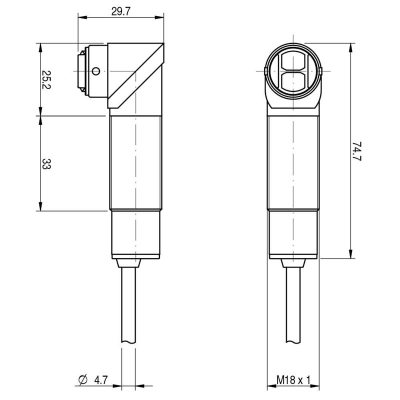 • Format: Cylindrique fileté, M18 x 1, faisceau radial