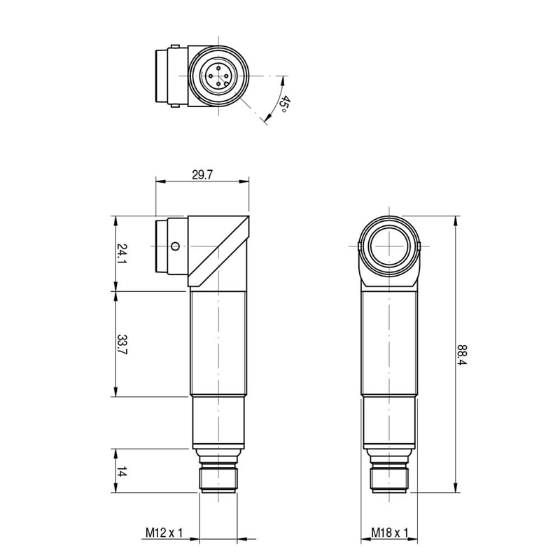 • Format: Cylindrique fileté, M18 x 1, faisceau radial