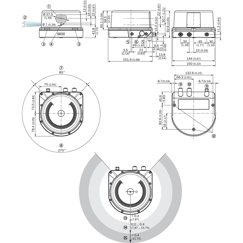 • Angle d'ouverture: Horizontal (275°), Vertical(e) (7,5°), sur 4 niveaux de mesure