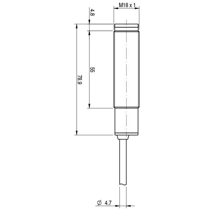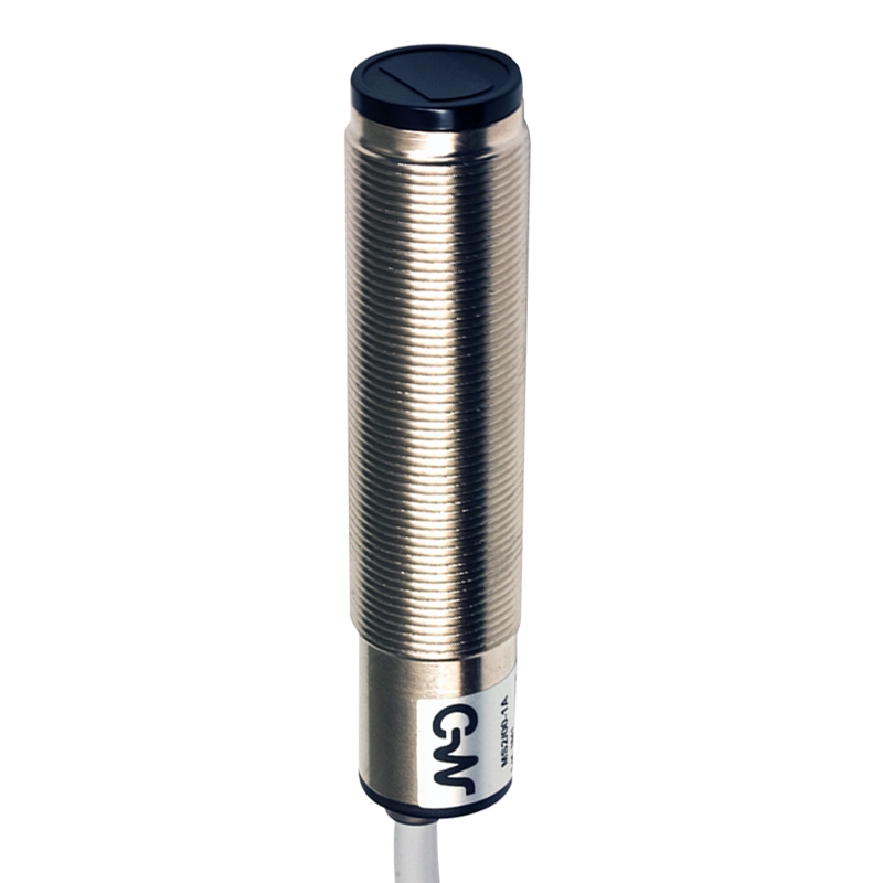 Capteur photoélectrique; Format: Cylindrique, M18 x 1, faisceau axial; Principe du capteur: Détecteur à réflexion directe; Principe de détection: Réflexion diffuse; Distance de détection Sn: 200 mm; Réglage: Aucun; Source d'émission: LED, Lumière infrarouge; Sortie de commutation: PNP/NPN; Type de commutation: Contact (NO/NF); Temps de réponse: 6,25 ms; Fréquence de commutation: 80 Hz; Raccordement: Câble 2 m, PVC, axial; Tension d'alimentation: 10-30Vdc; Diamètre: Ø 18 mm; Longueur totale du boîtier: 78,9 mm; Longueur de filetage utile: 57,5 mm; Matériau boîtier: Laiton nickelé; Matériau de la tête active: PMMA; Indice de protection: IP67; Température de fonctionnement: - 25°C…+ 70°C (hors gel); Homologations: CE, cULus; Accessoires fournis: Écrous M18 x 1; Série: MS