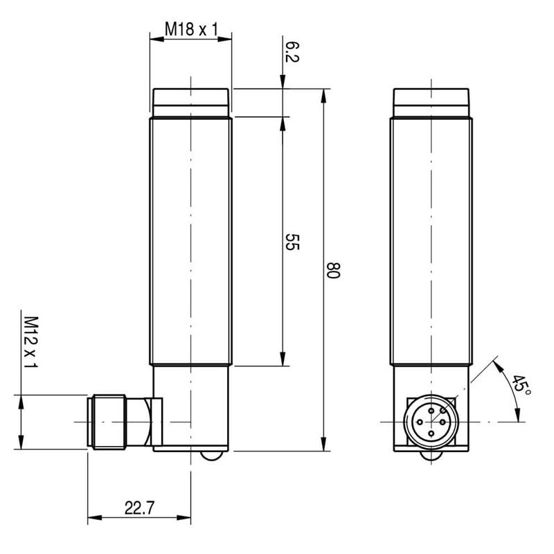• Format: Cylindrique fileté, M18 x 1, faisceau axial