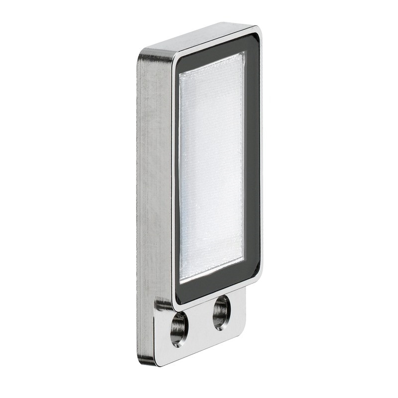 Réflecteur; Forme: Rectangulaire; Surface réfléchissante: 12 mm x 20 mm; Taille des prismes triples: 0,3 mm; Support: Inox; Fixation: Fixation traversante; Compatibilité des matériaux: Alcool, CleanProof+, ECOLAB, H2O2