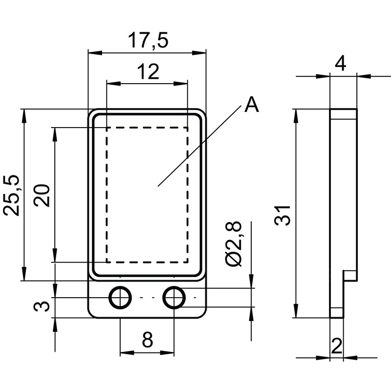 • Surface réfléchissante: 12 mm x 20 mm