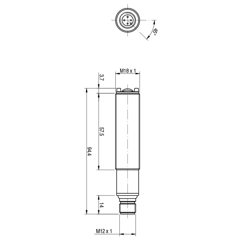 Capteur photoélectrique; Format: Cylindrique, M18 x 1, faisceau axial; Principe du capteur: Barrière réflex; Principe de détection: Barrage sur réflecteur; Distance de détection Sn: 3,5 m (RL110); Réglage: Aucun; Source d'émission: LED, Lumière rouge, Polarisée; Sortie de commutation: TRIAC; Type de commutation: Contact à ouverture (NF); Temps de réponse: 20 ms; Fréquence de commutation: 25 Hz; Raccordement: Connecteur mâle M12 4 pôles; Tension d'alimentation: 20...253Vac/50-60Hz; Diamètre: Ø 18 mm; Longueur totale du boîtier: 93 mm; Longueur de filetage utile: 57.5 mm; Matériau boîtier: PBT; Matériau de la tête active: PMMA; Indice de protection: IP67; Température de fonctionnement: - 25°C…+ 60° C (hors gel); Homologations: CE, cURus; Accessoires fournis: Écrous M18 x 1; Série: MV