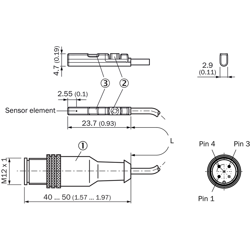 • Raccordement: Câble avec connecteur mâle M12, 3 pôles, 0,3 m, PUR