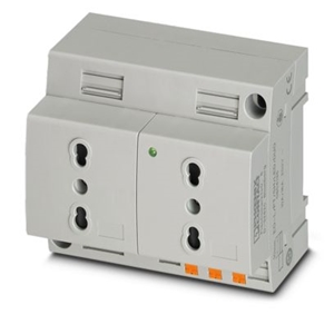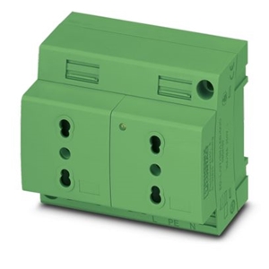Prise double, type L, à vis, pour Italie, avec protection étendue contre les contacts accidentels, témoin lumineux, vert, montage sur profilé, interface de service ou montage direct, 250 V AC, 16 A, -20 °C, 60 °C, CEI 23-50