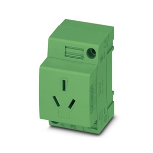 Prise de courant, pour la Chine et d'autres pays, Modèle d'enfichage de type I, type de raccordement: Raccordement vissé, coloris: vert, tension nominale: 250 V AC (50 Hz), intensité nominale: 10 A, pour montage sur profilé dans une interface de service ou pour montage direct, normes/prescriptions: GB 2099.1 et...