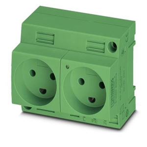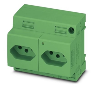 Prise double, modèle d'enfichage de type N, à vis, pour le Brésil / Afrique du Sud et autres pays, témoin lumineux, vert, montage sur profilé ou dans une interface de service, 250 V AC, 20 A, -20°C, 60°C, NBR 14136