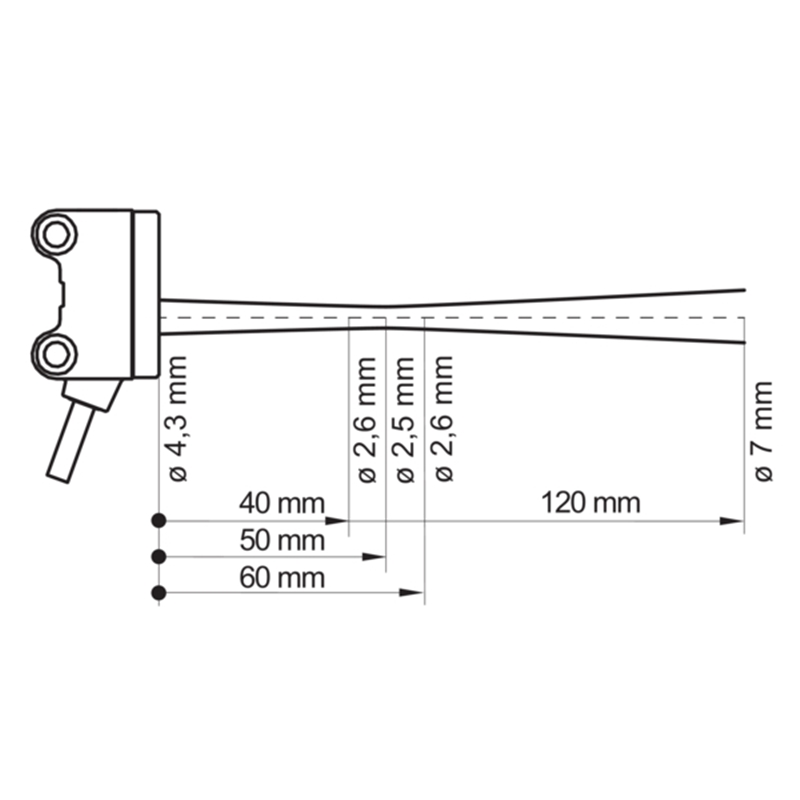 Capteur photoélectrique; Format: Parallélépipédique; Principe du capteur: Détecteur à réflexion directe; Principe de détection: Élimination d'arrière-plan; Distance de commutation Tw: 20 … 120 mm; Réglage: Teach-in et IO-Link; Source d'émission: LED PinPoint, Lumière rouge; Sortie de commutation: Push-pull; Mode de commutation: Commutation claire/sombre; Temps d'activation / désactivation: < 0,25 ms (High Speed Mode); Interface de communication: IO-Link V1.1, 230,4 kBaud (COM 3); Raccordement: Câble, 4 fils, 2 m, PVC; Tension d'alimentation: 10-30Vdc; Dimensions (L x H x P): 8 x 25,1 x 15,8 mm; Matériau du boîtier: Plastique (ASA, PmmA); Indice de protection: IP67; Température de fonctionnement: -25 ... +60 °C; Série: O200