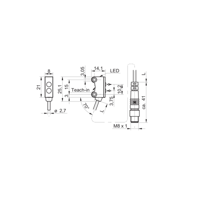• Raccordement: Câble avec connecteur mâle M8, 4 pôles, 200 mm