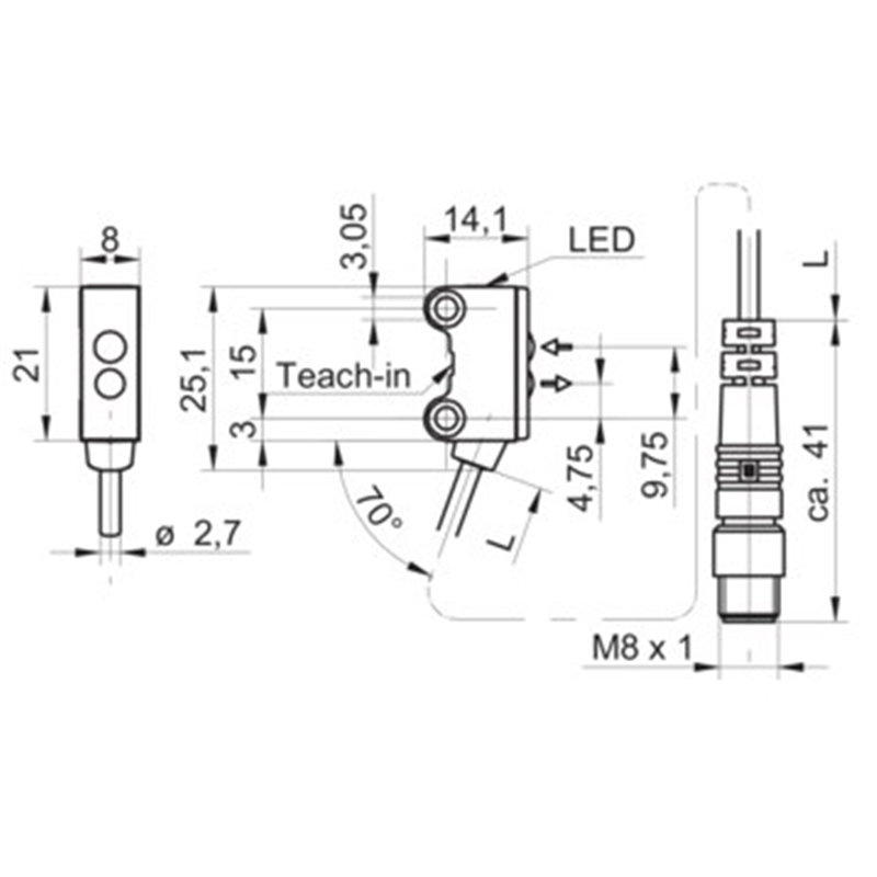 • Raccordement: Câble avec connecteur mâle M8, 4 pôles, 200 mm