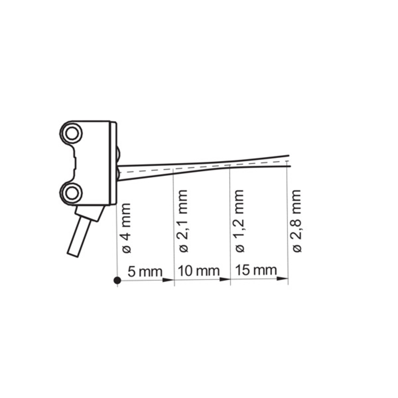 Capteur photoélectrique; Format: Parallélépipédique; Principe du capteur: Détecteur à réflexion directe; Principe de détection: Élimination d'arrière-plan; Distance de commutation max.: 3 … 15 mm; Réglage: Aucun; Source d'émission: LED, Lumière rouge; Version: Faisceau focalisé fixe; Sortie de commutation: PNP; Mode de commutation: Commutation claire/sombre; Raccordement: Câble 2 m, PVC; Tension d'alimentation: 10-30Vdc; Dimensions (L x H x P): 8 x 25 x 14.1 mm; Matériau du boîtier: Plastique (ASA, PMMA); Face avant (optique): PMMA; Indice de protection: IP67; Température de fonctionnement: -25 ... +50 °C; Série: O200