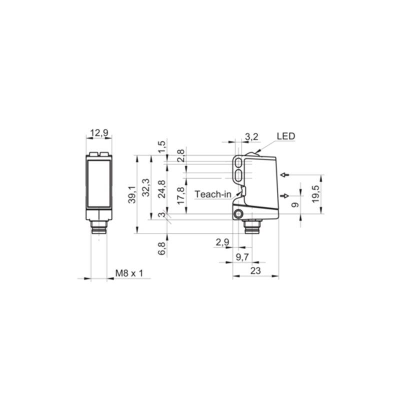 Capteur photoélectrique; Format: Parallélépipédique; Principe du capteur: Détecteur à réflexion directe; Principe de détection: Élimination d'arrière-plan; Distance de commutation max.: 300 mm; Réglage: qTeach et 1-Step Teach-in; Source d'émission: LED, Lumière rouge; Sortie de commutation: PNP; Mode de commutation: Commutation claire/sombre; Interface de communication: -; Raccordement: Connecteur mâle M8, 4 pôles; Tension d'alimentation: 10-30Vdc; Dimensions (L x H x P): 12,9 x 32,3 x 23 mm; Matériau du boîtier: Plastique (ASA, PmmA); Indice de protection: IP67; Température de fonctionnement: -25 ... +60 °C; Série: O300