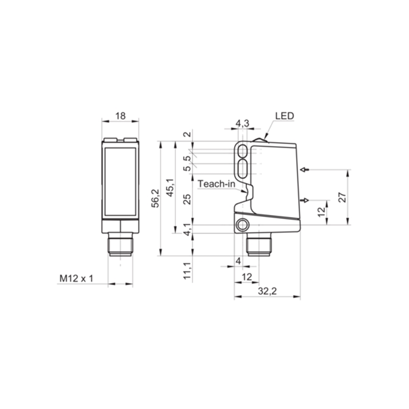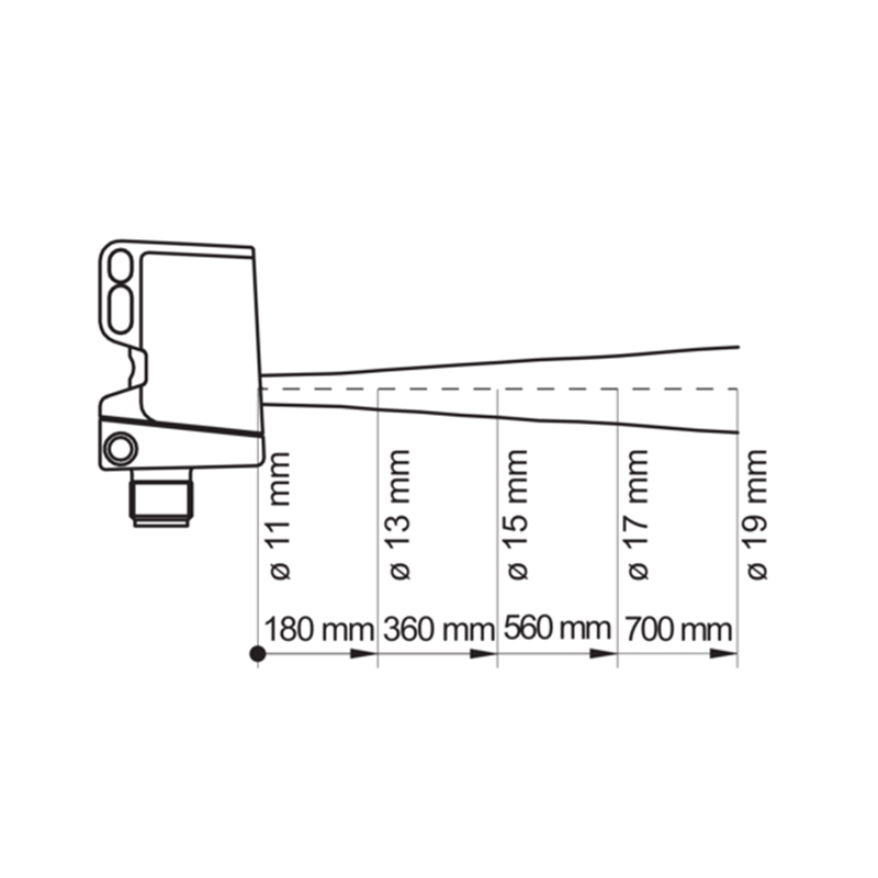 Détecteur de mesure de distance; Version: IO-Link mesure; Distance de mesure Sd: 60 ... 550 mm; Réglage: Teach-in et IO-Link; Résolution: 500 ... 5000 µm; Source d'émission: Diode IR pulsée; Forme du faisceau: Point; Sortie commutation: Push-pull; Interface de communication: IO-Link V1.1, 38,4 kBaud (COM 2); Raccordement: Connecteur mâle M12 8-pôles; Tension d'alimentation: 10-30Vdc; Dimensions (L x H x P): 18 x 45 x 32 mm; Matériau du boîtier: Plastique (ASA, PmmA); Indice de protection: IP67; Température de fonctionnement: -25 ... +60 °C; Série: O500