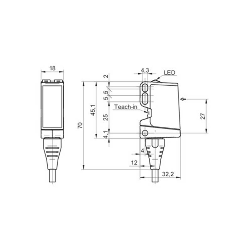 Capteur photoélectrique; Format: Parallélépipédique; Principe du capteur: Barrière simple; Principe de détection: Récepteur; Distance de commutation max.: 40 m; Réglage: qTeach; Source d'émission: -; Sortie de commutation: PNP; Mode de commutation: Commutation claire/sombre; Interface de communication: -; Raccordement: Câble 2 m; Tension d'alimentation: 10-30Vdc; Série: O500