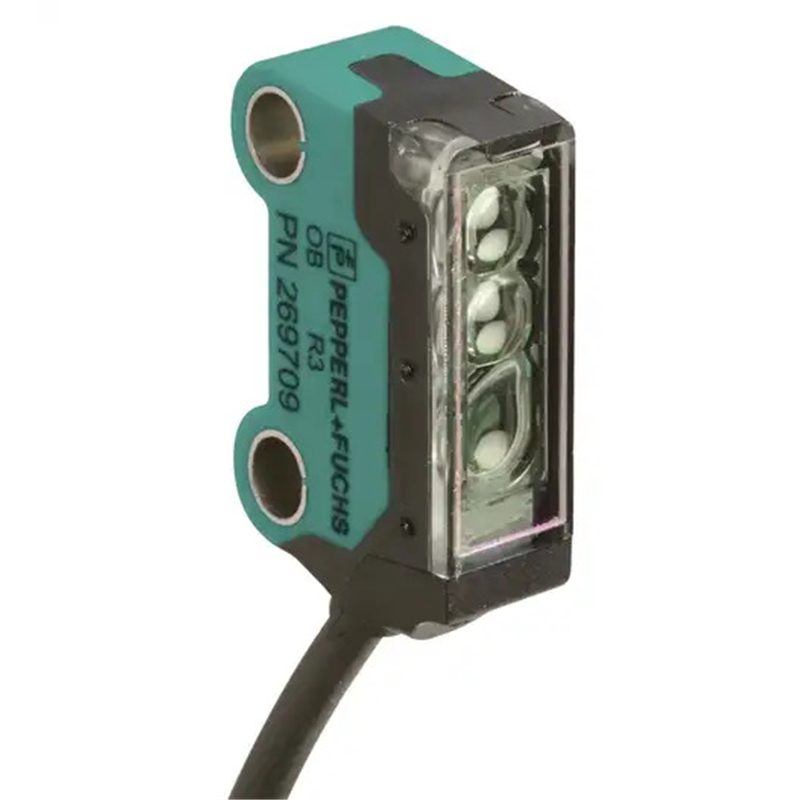 Détecteur de triangulation avec suppression de l'arrière-plan pour applications standard, modèle miniature, plage de détection de 30 mm, lumière rouge, éclairage activé, sortie PNP, câble fixe de 200 mm avec prise M8, 4 broches