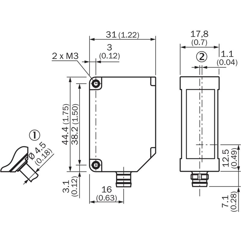 Capteur de mesure de déplacement; Format: Parallélépipédique; Plage de mesure: 50 mm ... 250 mm; Résolution: 0,2 mm (90%); Répétabilité: 0,6 mm; Source d'émission: Laser, Lumière rouge, Classe II (EN 60825-1); Taille typ. du spot lumineux (distance): 2 mm x 1,3 mm (150 mm); Sortie numérique: 1 x PNP/NPN, au choix; Raccordement: Connecteur mâle M8, 4 pôles; Matériau du boîtier: Aluminium; Série: OD Mini