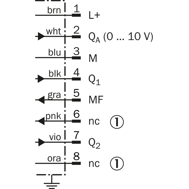 • Mode de raccordement: Connecteur mâle M12, 8 pôles, orientable