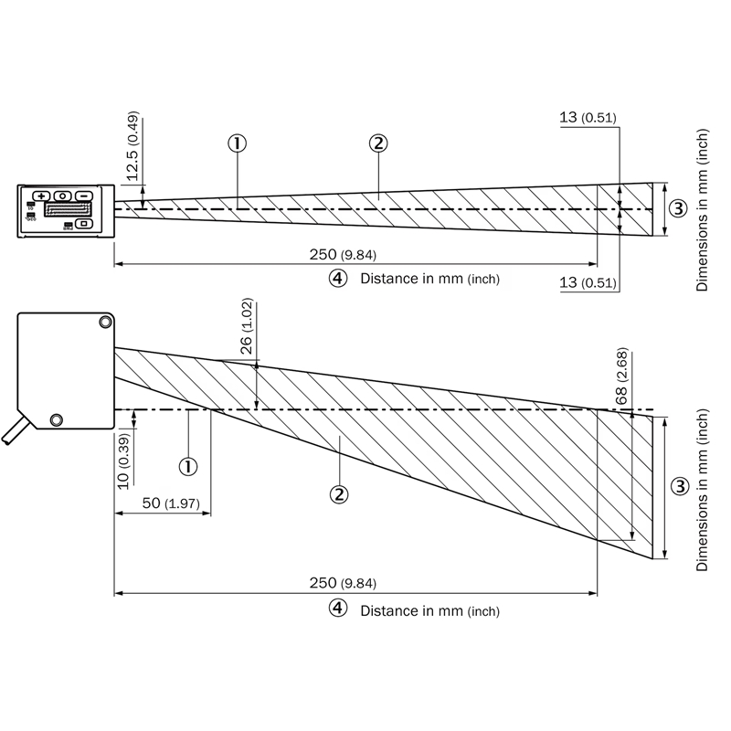 • Taille typ. du spot lumineux (distance) : Ø 300 µm (130 mm)