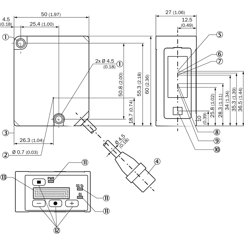 • Affichage OLED pour un paramétrage facile sur le capteur
