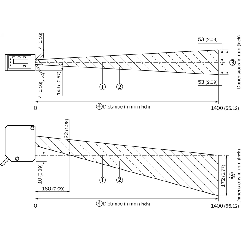 • Linéarité : ± 1 mm, 200 mm ... 700 mm, ± 3 mm, 700 mm ... 1.200 mm