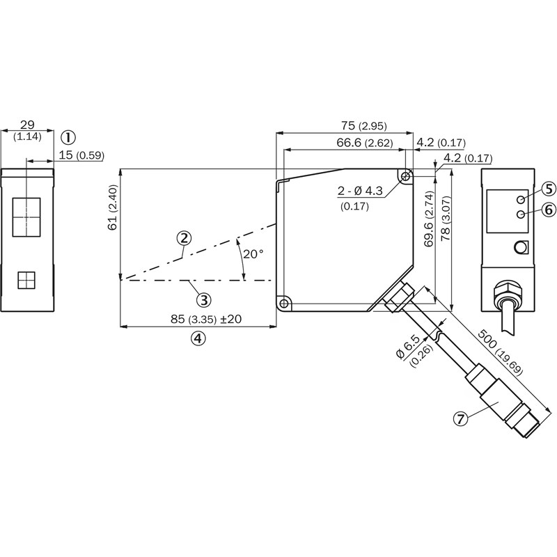Capteur de mesure de déplacement; Format: Parallélépipédique; Plage de mesure: 65 mm ... 105 mm; Source d'émission: Laser, lumière rouge visible; Taille typ. du spot lumineux (distance): 70 µm x 2.000 µm; Sortie analogique: 4-20mA; Sortie numérique: 1 ... 3 x PNP/NPN, au choix; Interface de communication: Ethernet, TCP/IP, UDP; Raccordement: Câble avec connecteur mâle M12, 8 pôles, code A, 50 cm; Tension d’alimentation Ub: 12-24Vdc; Dimensions (l x H x P): 25,9 mm x 71,5 mm x 53,2 mm; Matériau du boîtier: Métal (aluminium moulé sous pression); Matériau de la vitre frontale: Plastique (PMMA); Indice de protection: IP67; Température de fonctionnement: –10 °C ... +50 °C; Série: OD5000