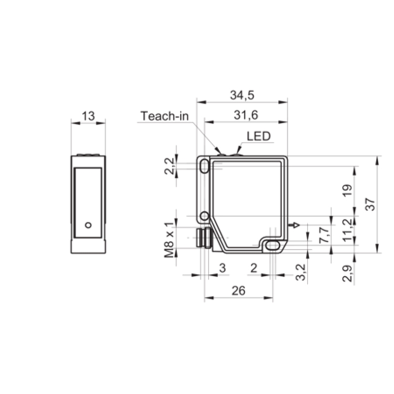 • Dimensions (L x H x P): 13 mm x 37 mm x 34,5 mm