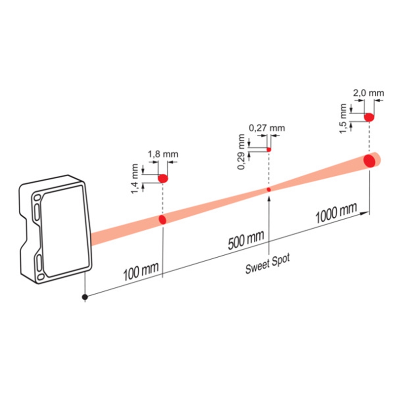Détecteur de mesure de distance; Version: OM70 laser point; Distance de mesure Sd: 100 ... 1000 mm; Plage de mesure Mr: 900 mm; Réglage: Touch Display, RS485; Résolution: 3 ... 63 µm; Reproductibilité: 1 … 32 µm; Source d'émission: Laser, Lumière rouge, Classe 2; Forme du faisceau: Point; Circuit de sortie: Analogique et RS 485; Signal de sortie: 4-20mA / 0-10V; Sortie commutation: Push-pull; Fréquence de mesure: 2500 Hz; Interface de communication: RS485; Raccordement: Connecteur M12 8-pôles; Tension d'alimentation: 15-28Vdc; Dimensions: 26 x 74 x 55 mm; Matériau du boîtier: Aluminium; Indice de protection: IP67; Température de fonctionnement: -10 ... +50 °C; Série: OM70