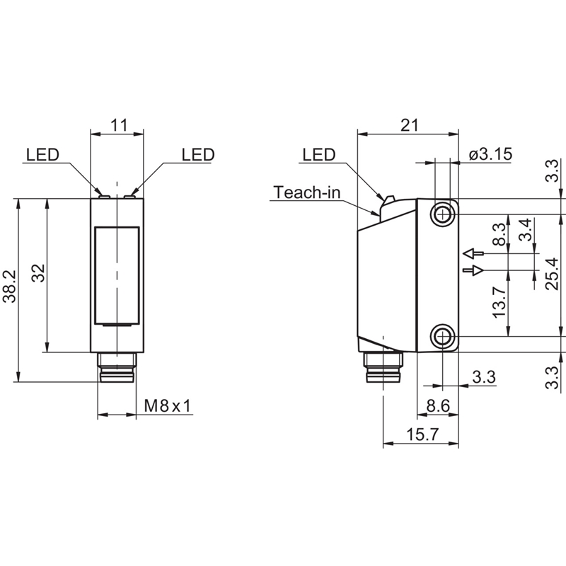 • Raccordement: Connecteur mâle M8, 4 pôles