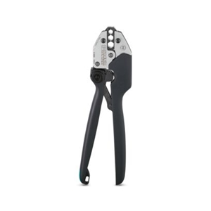 Pince à sertir, pour connecteurs CATV, 6,65 mm, 8,23 mm, 9,70 mm, trois stations de matrice marquées, dispositif de verrouillage déverrouillable, introduction latérale
