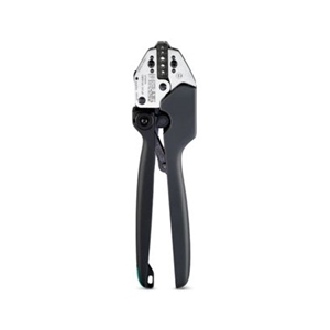 Pince à sertir, corps de pince compact, connecteur coaxial 1,69 mm, 5,41 mm, 6,48 mm, trois stations de matrice marquées, dispositif de verrouillage déverrouillable, introduction latérale, sertissage Hex