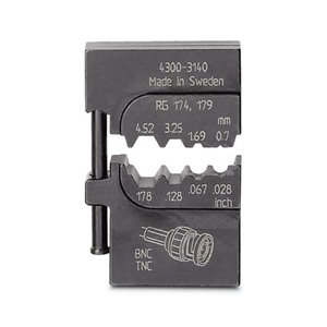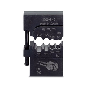Matrice, pour Crimpfox-M, pour connecteurs mâles coaxiaux : RG 174, RG 179 / BNC / TNC, conditionnée dans une boîte de rangement juxtaposable