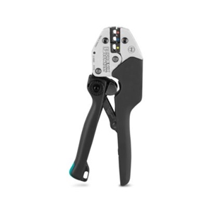 Pince à sertir, corps de pince compact, pour cosses isolées (vert clair, rouge, -1), trois stations de matrice marquées, dispositif de verrouillage déverrouillable, introduction latérale