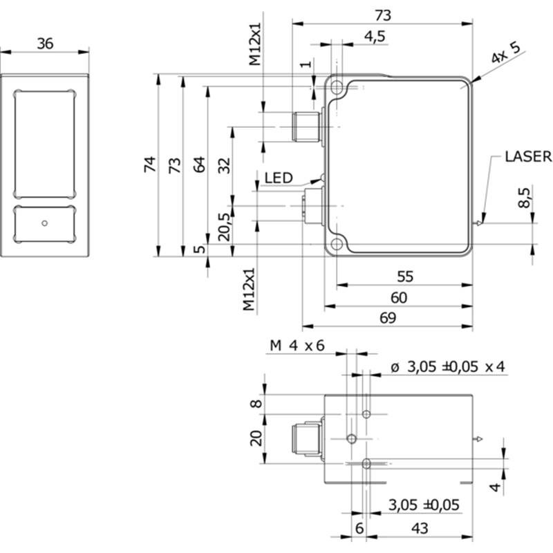 Capteur de profil; Distance de travail (Sdc ...Sde): 100 ... 150 mm; Fonction: Modes de mesures (M): Hauteur, Droite / Angle, Surface , Bord, Largeur/Gap, Bord d'intensité, Caliper Z, Caliper X, Distance Caliper, Cercle Jauge d'angle, Profil in x-z; Classe de performance: Ethernet; Classe laser: 2; Longueur d'onde du laser rouge: 660 nm; Plage de mesure (MR) en z: 50mm; Interfaces: Fast-Ethernet 100-MBit/s, 2x Sortie commutation, Sortie analogique; Protocôle: Profinet (CC-A), Ethernet/IP, Modbus TCP, OPC UA, UDP, IO-Link; Renseignement: Basic version M05; Caméra & Laser: Résolution 600px, Laser 660nm; Plage de tension +Vs: 18 ... 30 VDC; Sortie analogique: 4-20mA, 2-10mA, 0-10V, 0-5V; Sorties de commutation: 2 x Sortie commutation (Push-Pull); Raccordement électrique: M12, 12-pôles, codé-A, mâle; Connexion Ethernet: M12 8-pôles, codé-X, femelle; Entrées de codeur: HTL / TTL disponible; Dimensions (L x H x P) 36 mm x 74 mm x 60 mm; Température ambiante: 0 ... + 45 °C; Série: OX
